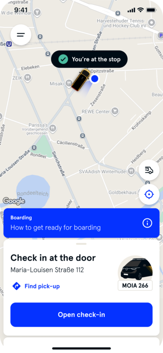 - Your autonomous MOIA will arrive at the virtual pick-up point shown in the MOIA app
